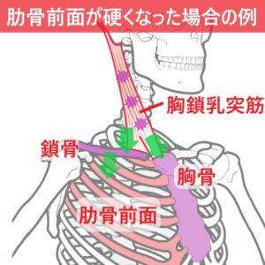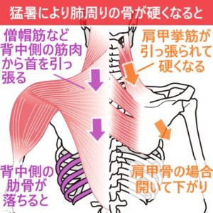 - 肋骨を介して、背中の(背骨を支える)筋肉を硬直させる
