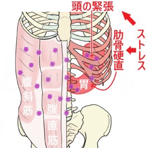 例1)心理的ストレスによる胃の負担が腹直筋へ波及する