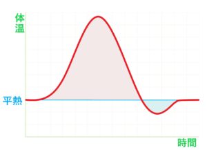 最初に、発熱後の理想の経過と、そのためのポイントをグラフにしておきます。それぞれの詳細については、このあと解説していきます。